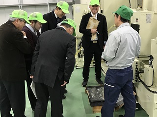 2月24日(金)トヨタ自動車東日本株式会社を含めた計8名の皆様が工場見学に来社されました。担当者から歓迎の挨拶と会社説明を受けた後、生産本部工場と特注パーツ工場、特注パーツ工場第2棟を見学されました。