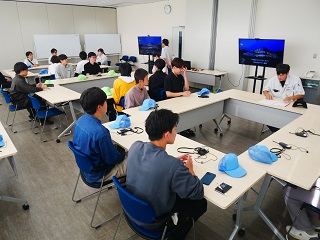 9月24日(水)、岩手大学理工学部 システム創生工学科 機械科学コースの学生17名・引率2名、計19名の皆さんが工場見学に来社されました。会社説明を受けた後、3班に分かれ本社工場を見学し、社長挨拶の後に弊社の岩手大学OB・OG社員を交えて、グループ討議・意見交換会を開催しました。